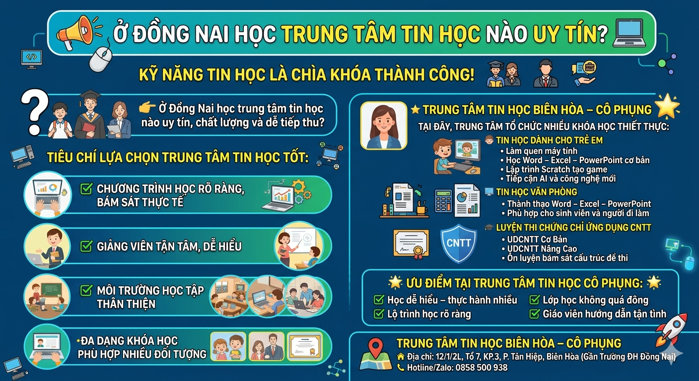 👉 Ở Đồng Nai học trung tâm tin học nào uy tín, chất lượng và dễ tiếp thu?
